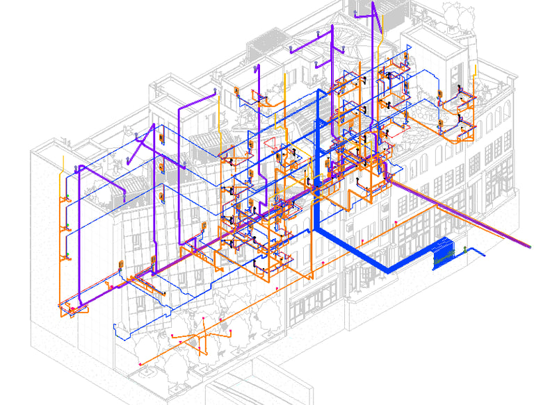 Support in BIM coordination process and meetings. Minimizing material usage, avoiding clashes with other trades and creating ease of installation.